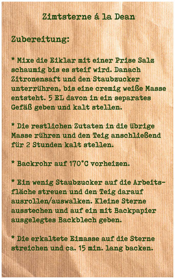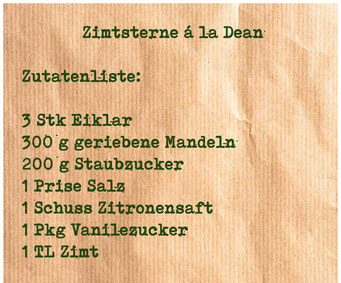 Und ein Rezept, das ich jedes Jahr wieder hervorhole, ist dieses: Zimtsterne á la Dean!