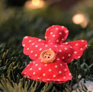 Ich zeige euch, wie ihr aus Stoffresten, Stecknadeln, ein wenig Watte, Nadel und Faden (oder einer Nähmaschine) und eventuell ein paar Knöpfen hübsche kleine Engelchen basteln könnt. Die eignen sich wunderbar als Schmuck für den Weihnachtsbaum oder auch für den Türkranz!