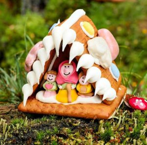 Wer sein Häuschen noch besonders dekorieren möchte, der kann das gern mit allerlei kleinem Süßkram tun. Wer gern eine kleine Krippe basteln möchte, der kann für die Personen zum Beispiel Gummibärchen verwenden.